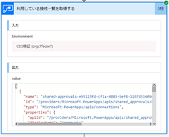 全体図を見てもらうと、接続情報を取得するのと同時に、作成した Flow の一覧を取得しているのに気づかれると思います。これは理由があって、Flow の接続情報には現在利用していないものも残っており、チェックが不要なものも含まれているためです。また、Flow のポータル上に表示されていないゴミ情報も残っていることがあり、余分な処理を省く必要があります。